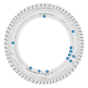 - Original Equipment Manfacturer bogstav, symbolet varierer alt efter bilproducenten, og bekræfter bilproducentens godkendelse af dækket (f.eks AO betyder Audi, MO betyder Daimler, N-0 og N-1 betyder Porsche).